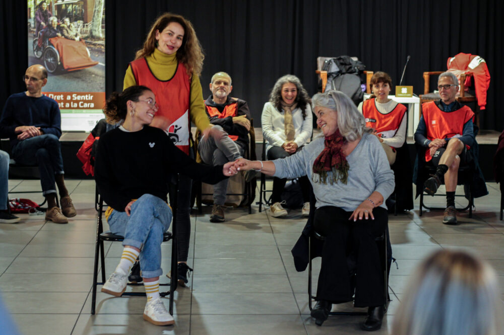 🎭Un cop vam sortir del cinema Foment, vam tornar cap a la Fundació Iluro. En l’Ateneu ens estaven esperant les amigues de l’Associació Sisme Creatiu, que van organitzar una sèrie de dinàmiques creatives per reforçar els vincles entre el voluntariat. D’entre les diferents activitats que vam realitzar, una de les millors rebudes va ser la representació d’escenes basades en situacions reals viscudes durant les passejades. Aquesta experiència va generar un espai de reflexió conjunta, on vam poder compartir aprenentatges, bons moments, emocions i estratègies per afrontar els reptes que es presenten en el dia a dia del voluntariat. Sens dubte, una activitat molt enriquidora!