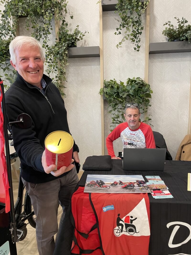 Acompanyats del nostre estimat tricicle Addams, els voluntaris han donat a conèixer el projecte d’En Bici Sense Edat i han animat els usuaris i treballadors del centre a col·laborar amb petites aportacions per donar suport a l’associació.