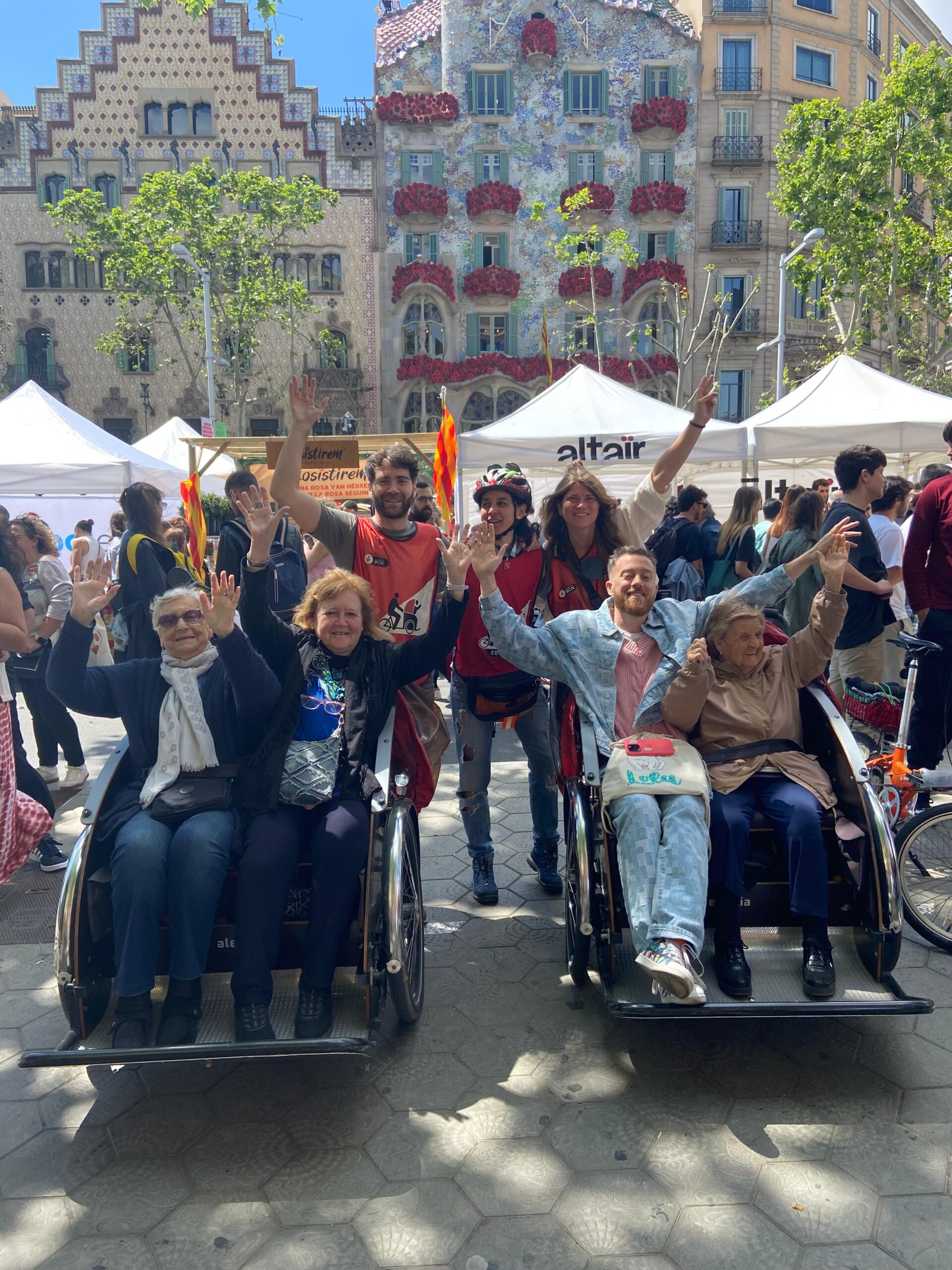 Les voluntàries del capítol barceloní van tenir l’oportunitat de passejar als seus familiars en aquesta diada tan especial. La jornada va ser particularment emotiva per a Carles Massot, president de l’associació, que va aprofitar per pedalar amb la seva mare, la Delfina, i amb la Remei, a qui estima com només es pot estimar a una àvia. Durant el recorregut, a l’altura de passeig de Gràcia, es van trobar amb un altre tricicle on viatjaven la popular creadora de contingut “amb bon humor”, Rosa -coneguda com “l’àvia d’Espanya i del món sencer”- i el seu net Christian. Amb més de 9 milions de seguidors a TikTok, la Rosa va voler compartir aquesta jornada cultural amb En Bici Sense Edat. Tant ells com la resta d’usuàries que van participar en la passejada van rebre una rosa molt especial!