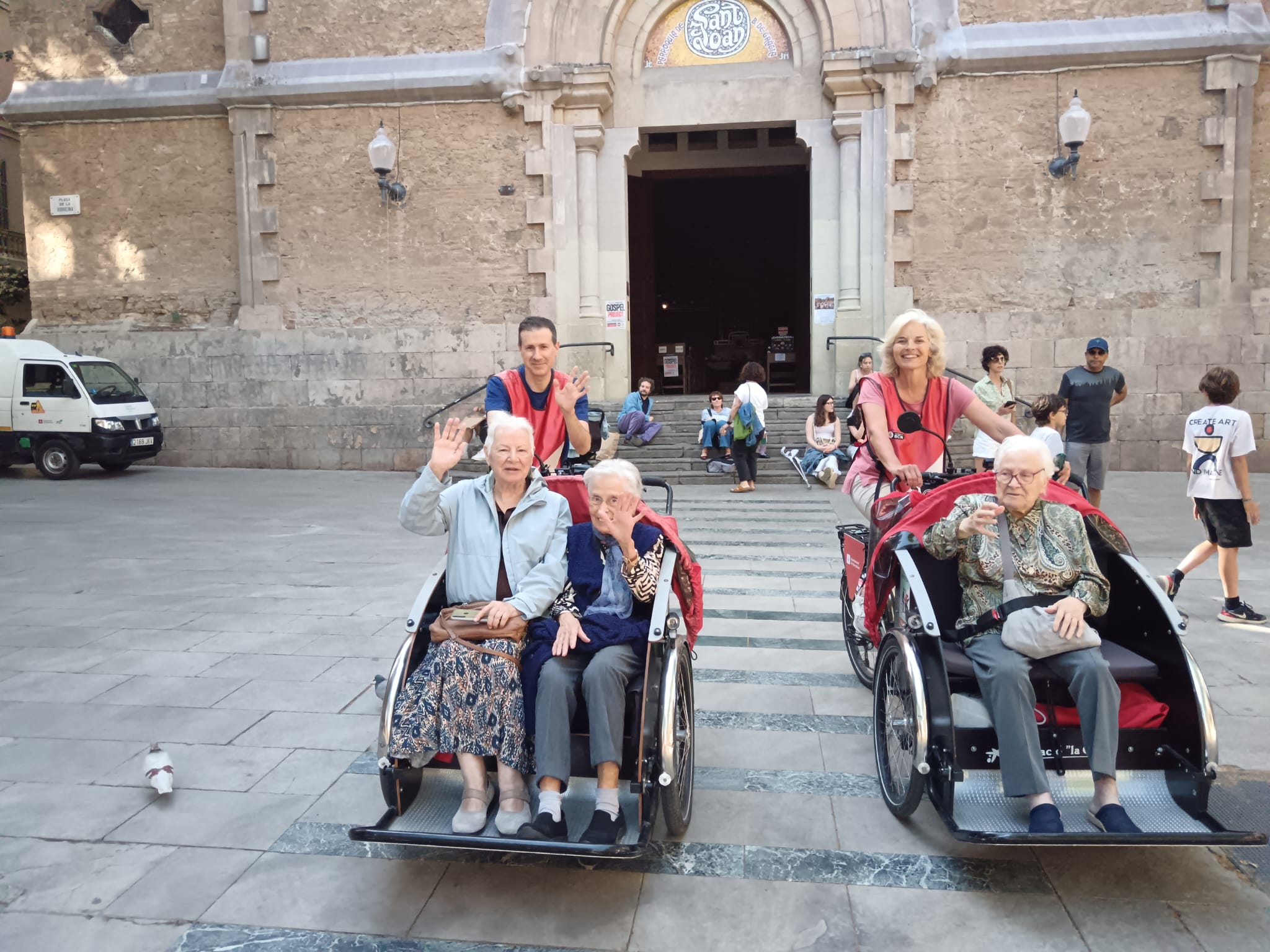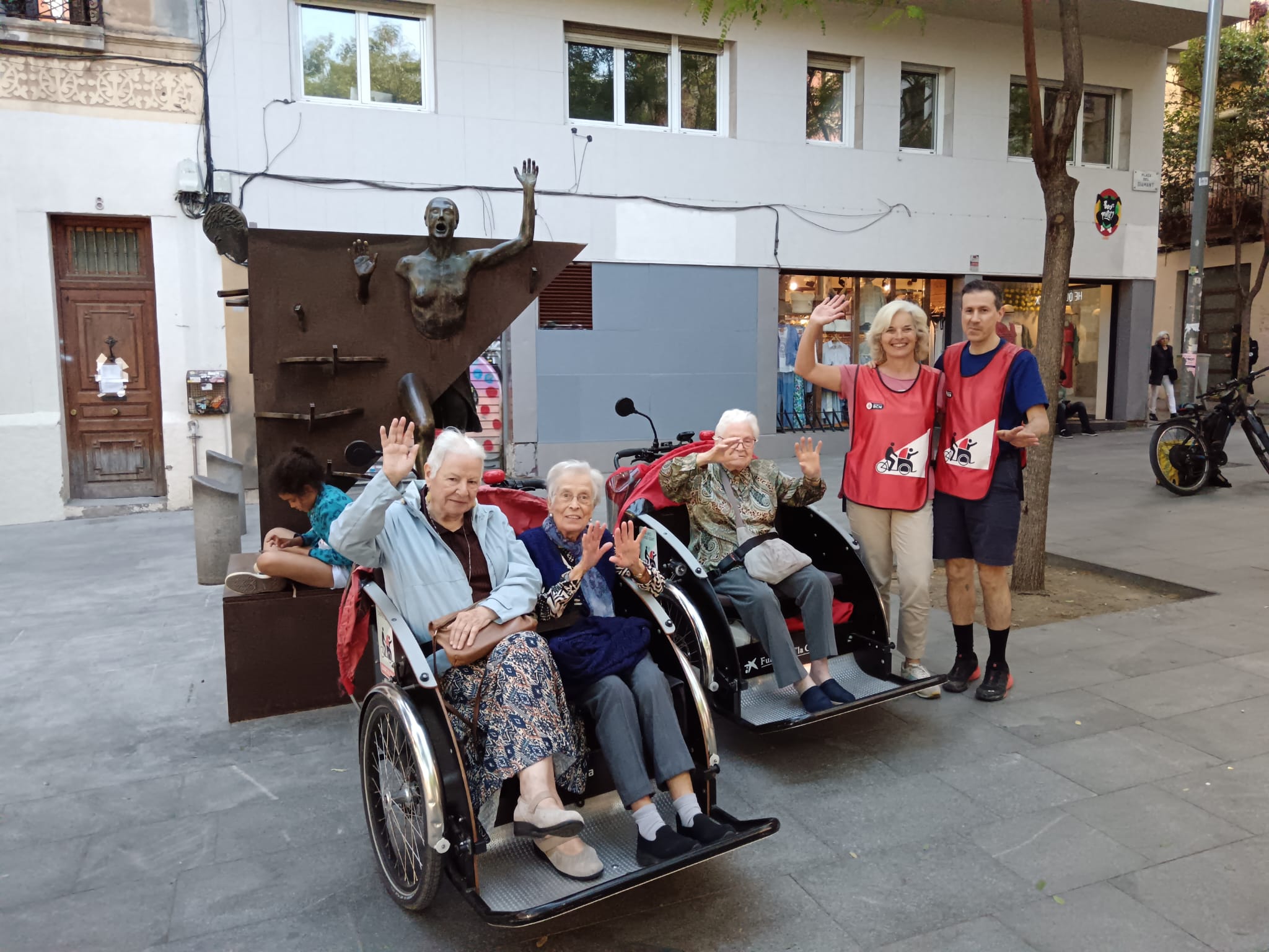 La gent gran d’aquestes dues residències i les usuàries dels habitatges amb serveis Cibeles són les primeres passatgeres d’aquesta nova aventura. Com per exemple, la Glòria, veïna de Gràcia de tota la vida i una de les primeres a fer la ruta, que ha pujat al tricicle amb un punt de reticència, però ha acabat feliç de redescobrir el seu barri, saludant els infants pel camí i explicant l’experiència amb entusiasme a l’arribada. A més, algunes voluntàries d’EBSE han destacat que, malgrat les primeres impressions, “Gràcia és molt pedalable”.