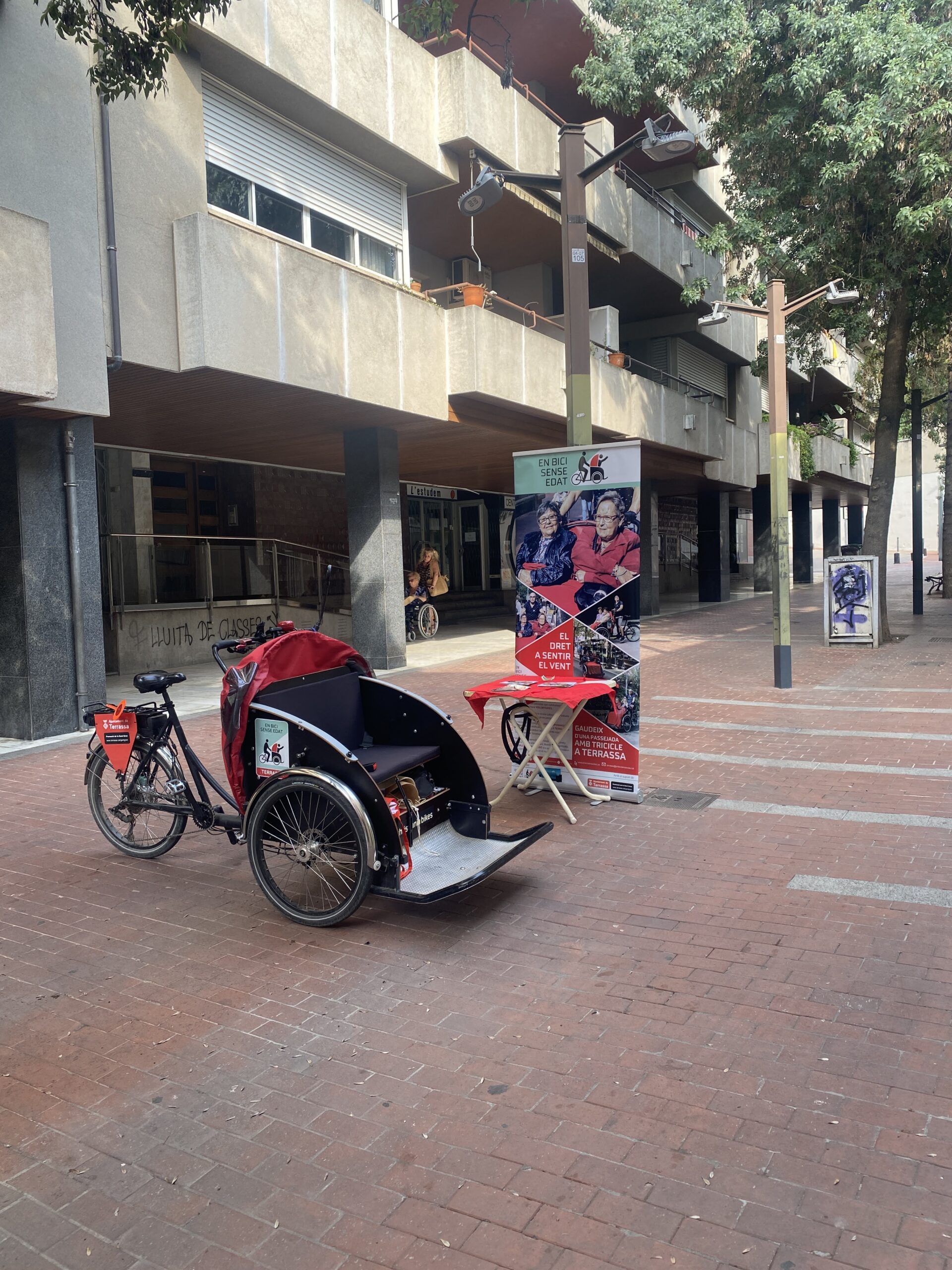 La jornada ha començat amb la participació en la Pedalada Popular, una activitat emblemàtica de la Festa Major. Entre les persones participants, hi ha estat present l’Àngel, usuari de la Residència Mossèn Homs, molt vinculat al projecte. Coneixedor del recorregut, ha expressat que aquest trajecte l’ajuda a orientar-se i sentir-se part activa de la ciutat. Enguany, però, les voluntàries d’#EBSETerrassa no han aconseguit cap dels mocadors característics de la Festa Major, que ell col·lecciona amb entusiasme. Si algú en té algun de sobres, fer-li arribar seria un gran gest!