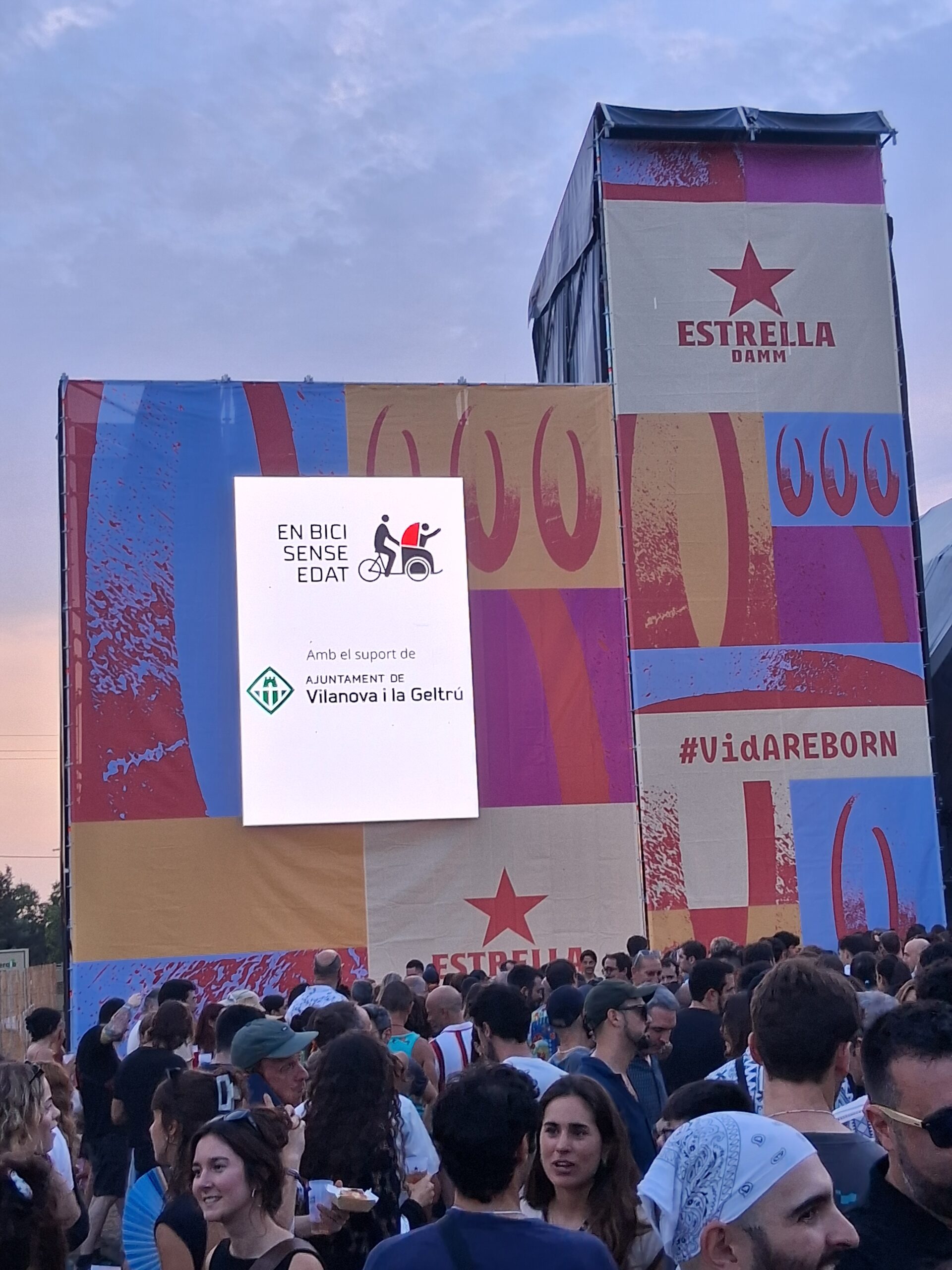 🎸Però això no és tot! el capítol no ha passat desapercebut enmig d’aquest escenari dedicat a la música internacional. A banda de comptar amb un estand propi, a les pantalles del festival s’ha projectat un espot sobre la tasca transformadora que duu a terme l’entitat, emès durant els tres dies del festival entre concert i concert. Perquè sí, hi ha festivals que celebren la vida… i també iniciatives, com En Bici Sense Edat, que la transformen!