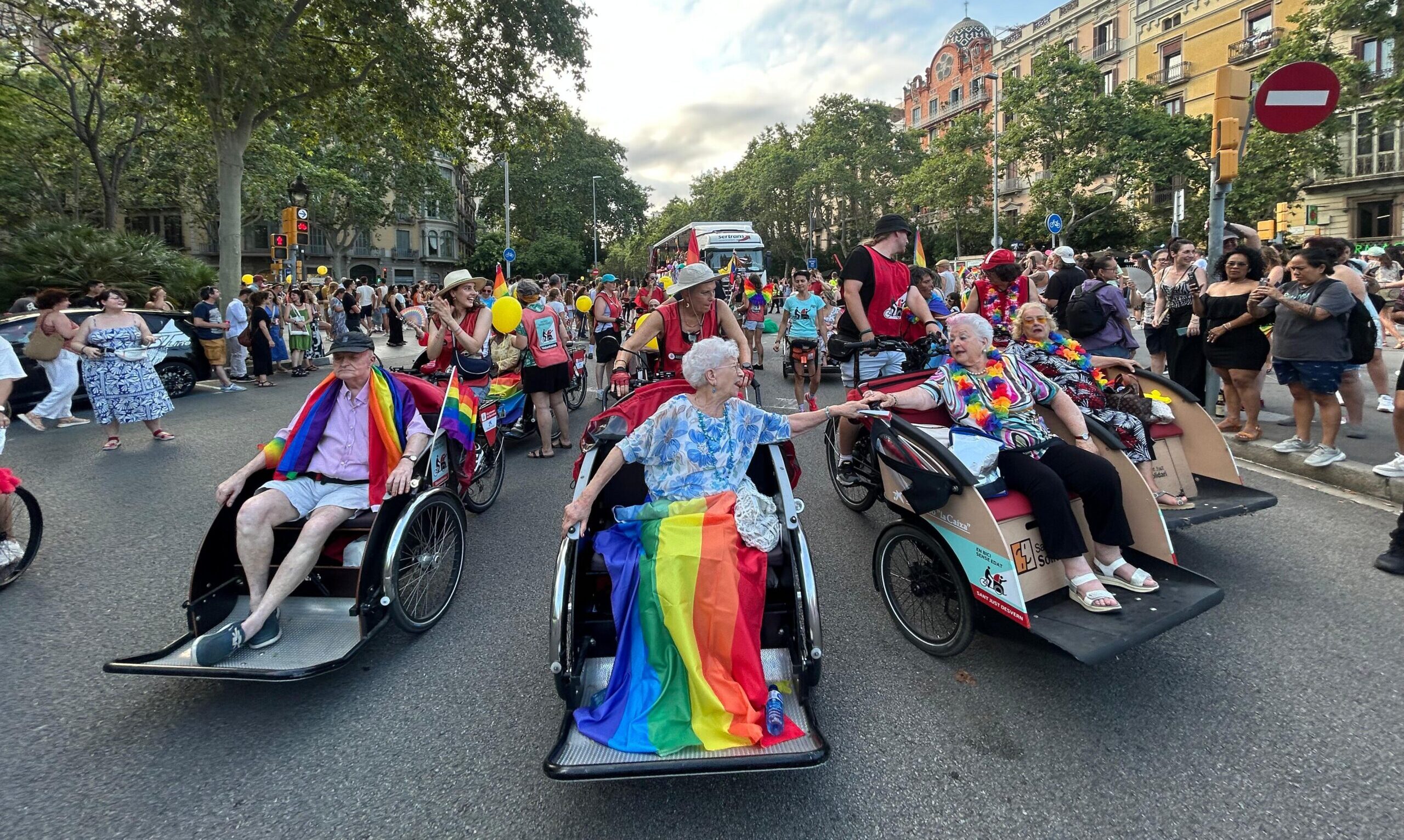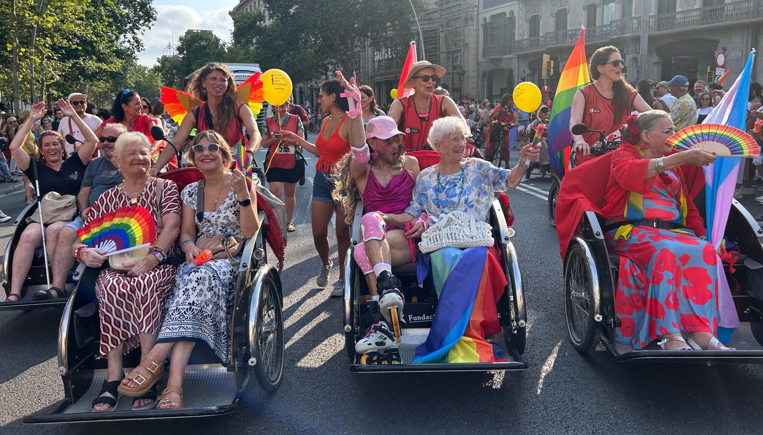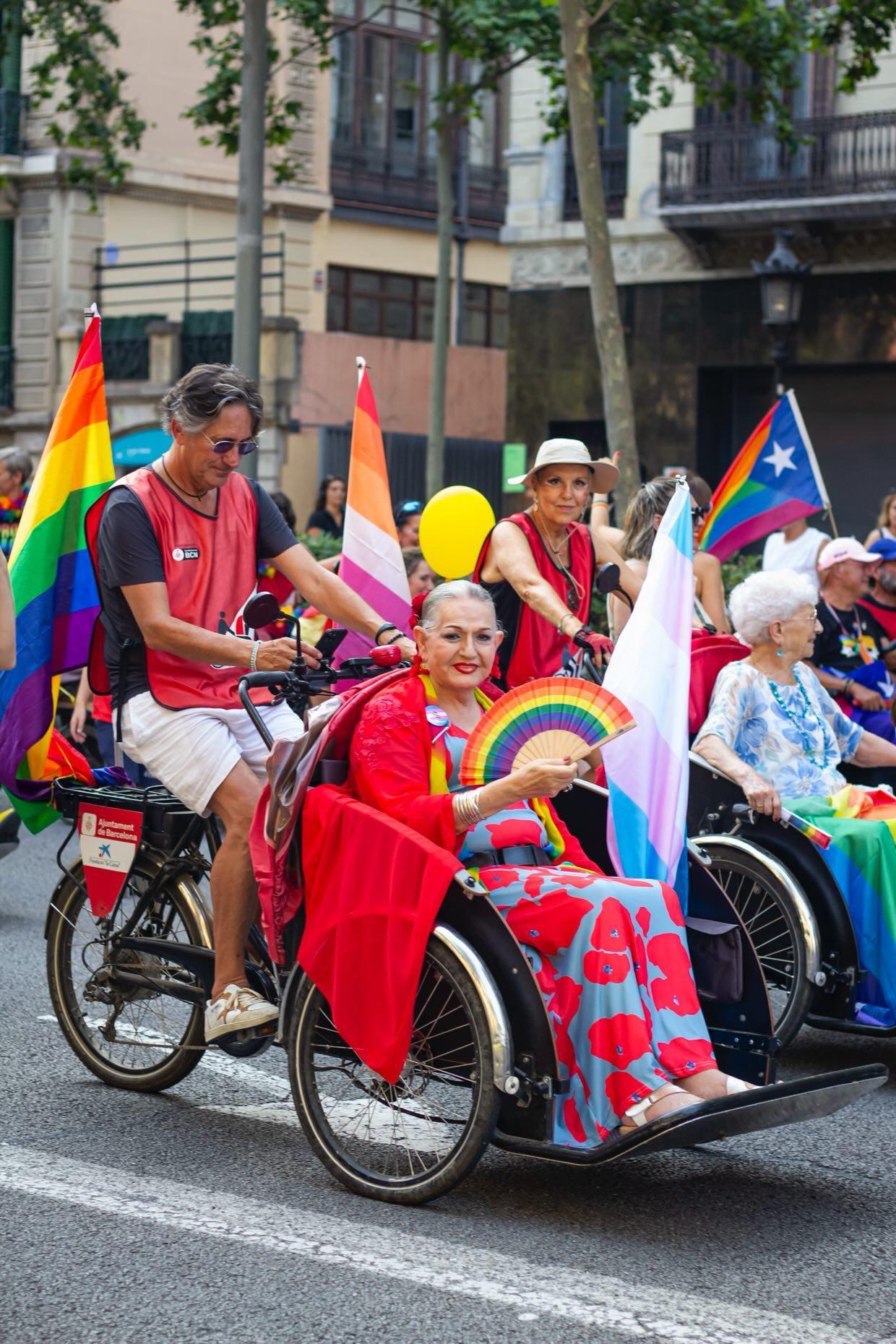 A bord dels tricicles hi han viatjat persones grans, usuàries amb mobilitat reduïda, persones amb discapacitat i membres del col·lectiu LGTBQIA+ que han volgut viure la jornada en primera línia, provinents de residències, casals, habitatges tutelats i àmbits particulars. La participació ha posat de manifest la voluntat col·lectiva de reivindicar que la identitat, els drets i l’orgull no tenen edat ni condició.✊