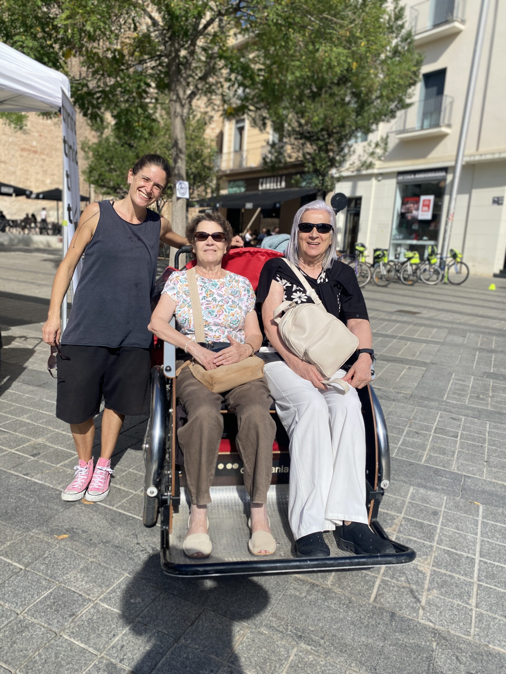 Durant tot el dia , de 10.30 a 13.30 h i de 17.30 a 20.30 h, es van realitzar catorze passejades amb dos tricicles elèctrics adaptats, permetent que persones grans i altres beneficiàries gaudissin d’En Bici Sense Edat pels carrers de la ciutat.
