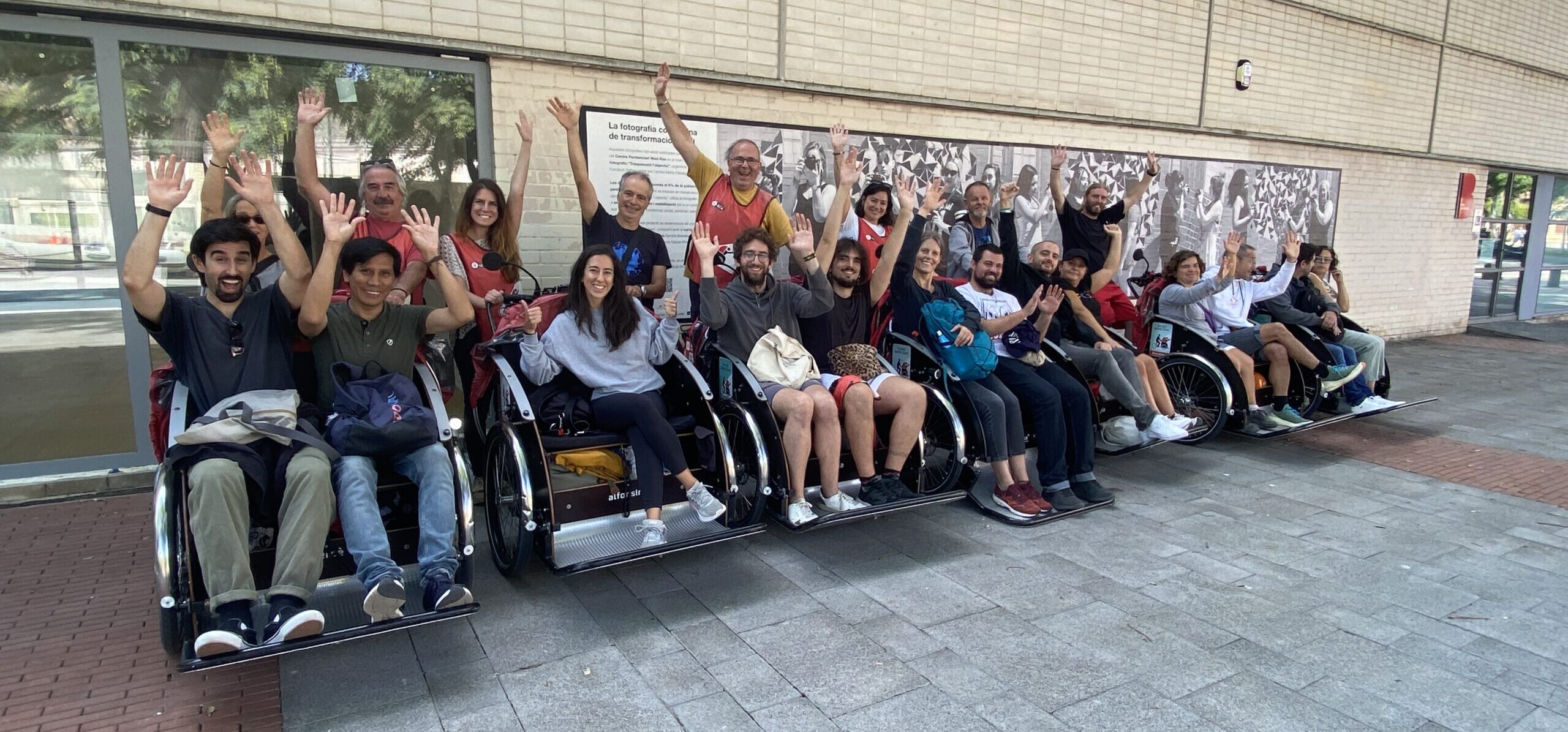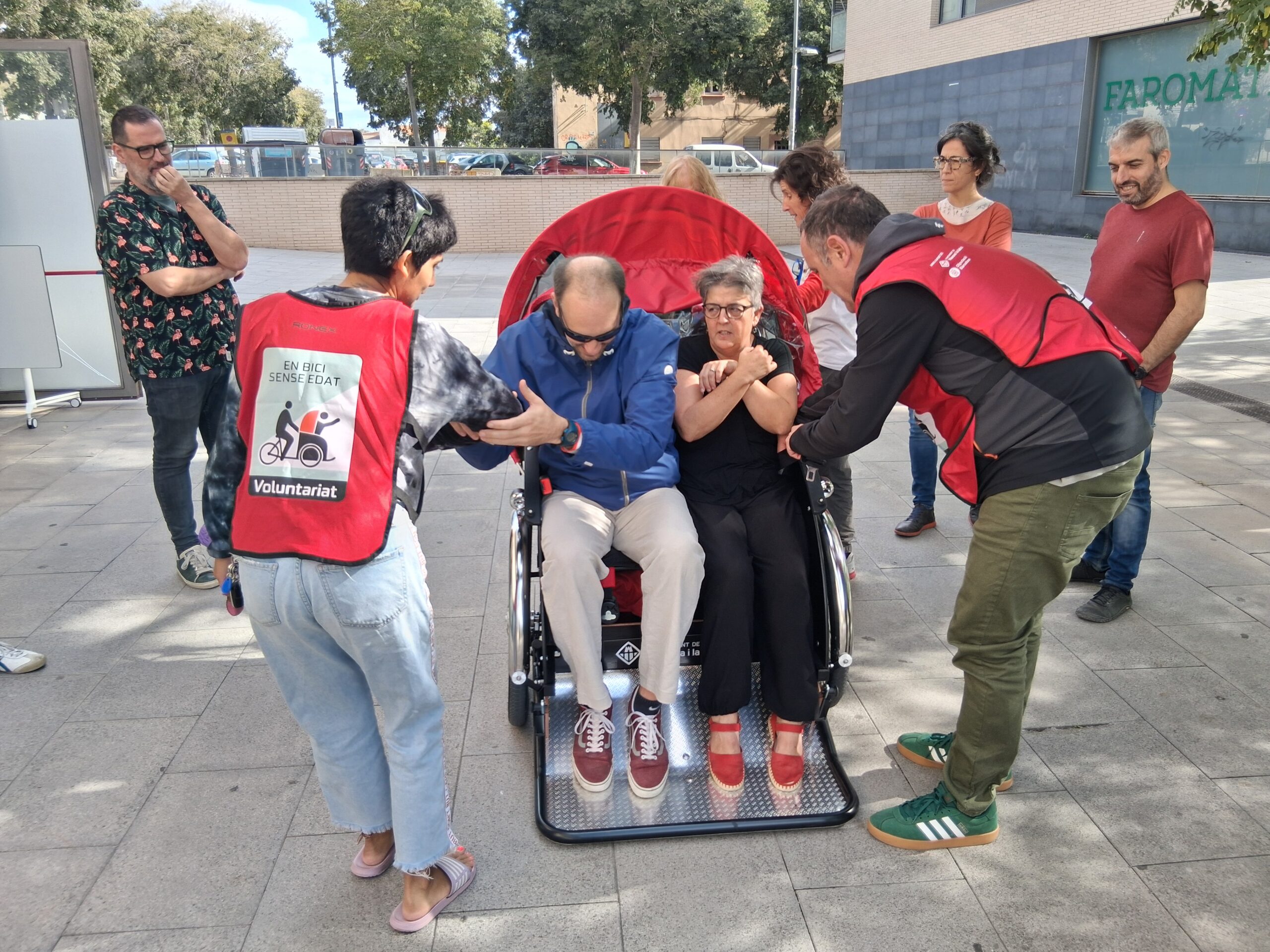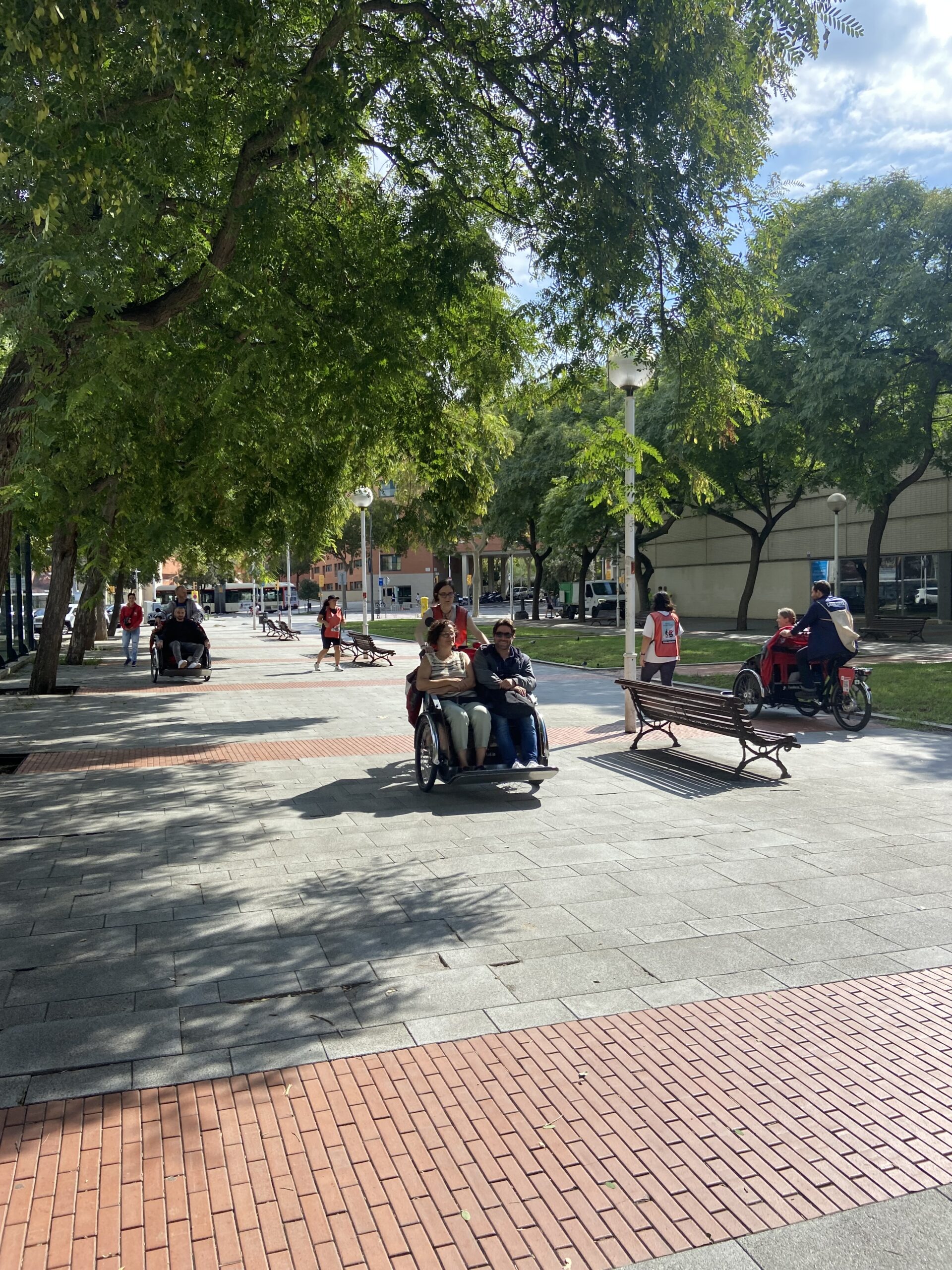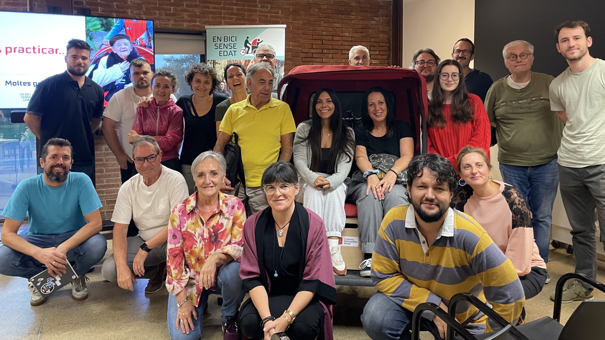 En la pràctica, els voluntaris veterans van col·laborar fent de passatgers, ajudant als nous a visualitzar la seva futura tasca. Aquesta part pràctica es va dur a terme per l’Avinguda del Bogatell, un espai ideal per viure les primeres pedalades com a pilots d’En Bici Sense Edat!