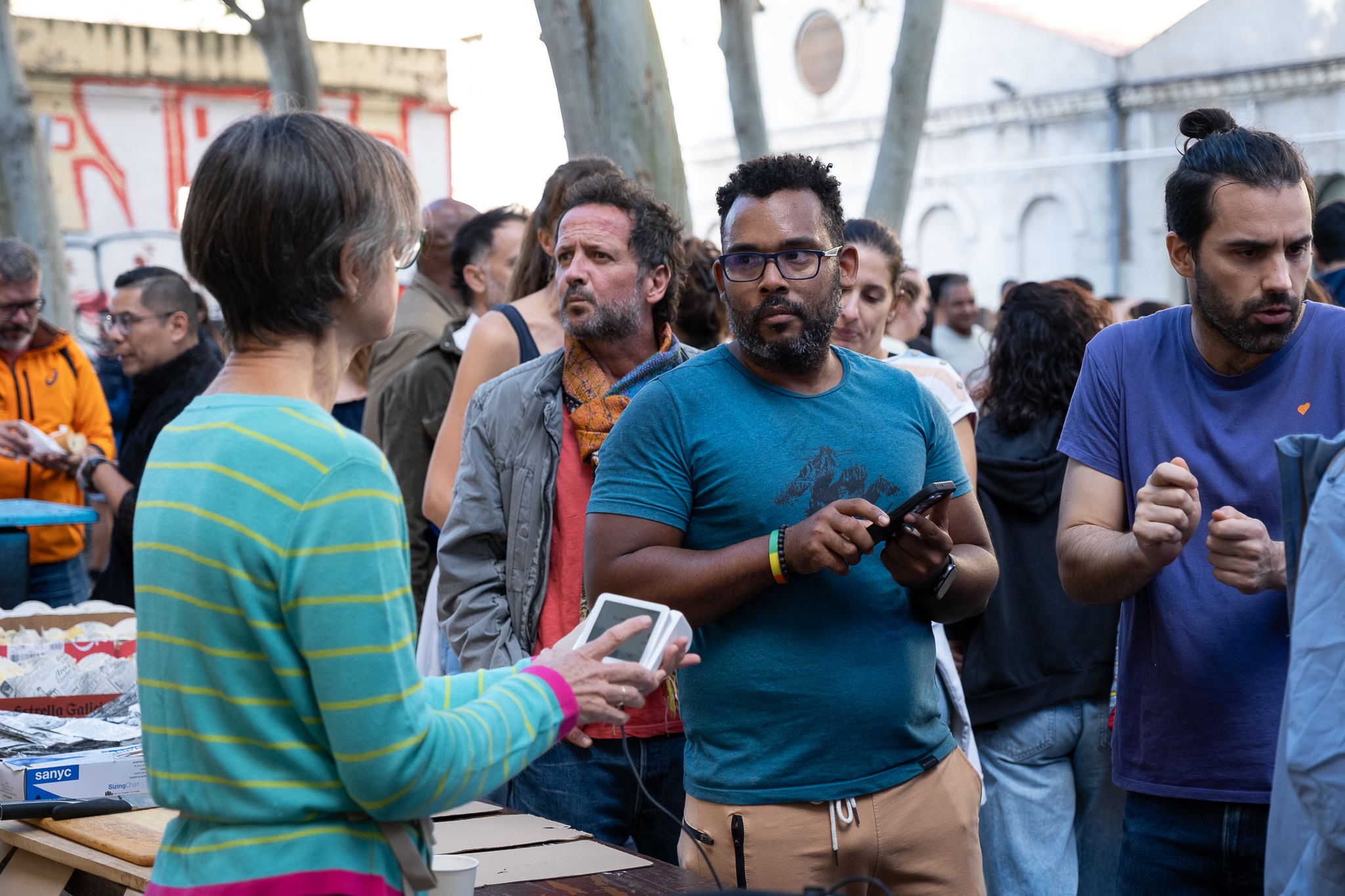 Mentrestant, les paradetes solidàries i el bar prenien forma, i l’aroma irresistible de les brases encenien la gana de tothom. L’Associació uruguayo-catalana Los Botijas, mestres del bon foc, va preparar una botifarrada deliciosa (també amb opció vegana 🌱) que va fer ballar els sentits!