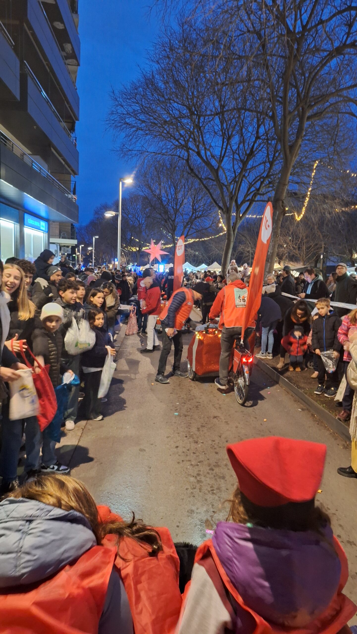 Amb els seus dos tricicles elèctrics, el capítol va recórrer els principals carrers de la ciutat, iniciant el trajecte a l’Avinguda de Gràcia. En aquesta ocasió tan especial, les copilotes van ser nenes i nens, que van ajudar els patges reials a repartir caramels entre els infants de la vila! Sens dubte, una GRAN nit!