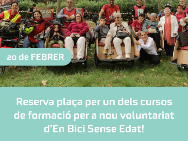 La formació s’impartirà de manera online. El total de la formació es divideix en dues sessions d’assistència OBLIGATÒRIA: SESSIÓ TEÒRICA ONLINE – 15 de març de 18:00 a 19:30 SESSIÓ PRACTICA PRESENCIAL – Dates per definir Inscripció GRATUÏTA Vols participar en el programa En Bici Sense Edat? Les persones voluntàries d’En Bici Sense Edat s’inscriuen per fer passejos […]